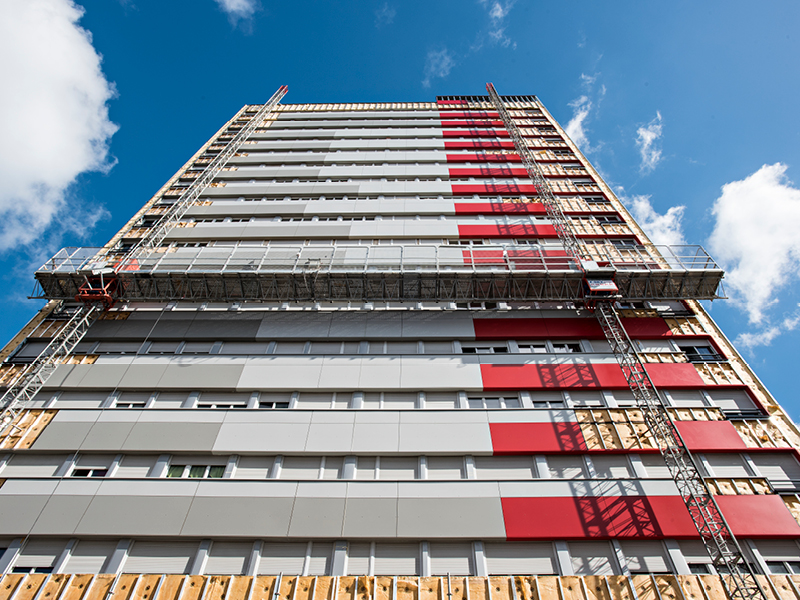 Travaux de dépose du bardage existant et pose d’un bardage à la suite d’un sinistre dommage-ouvrage sur la Tour T12 à Viry Chatillon (91).